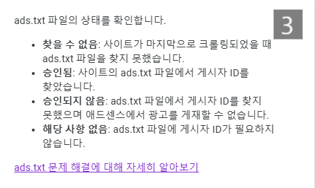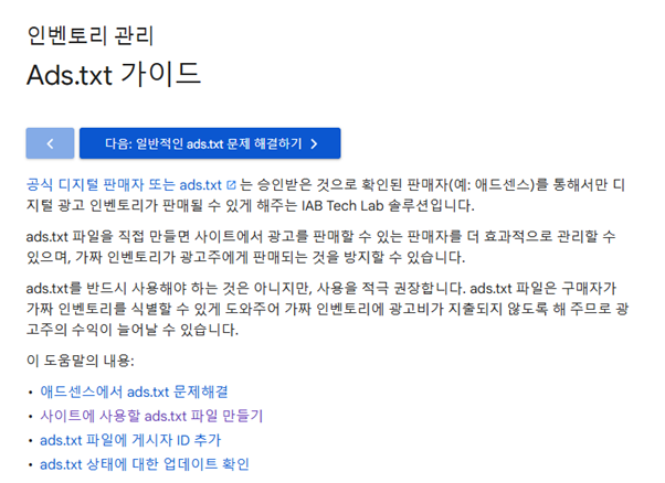 ads.txt 문제 해결에 대해 자세히 알아보기 눌러주세요.