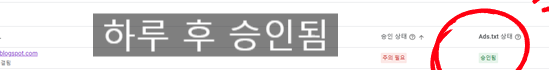 그리고나서 하루 이틀 정도 지나면 ads.txt승인됨 이라고 뜨게 됩니다.